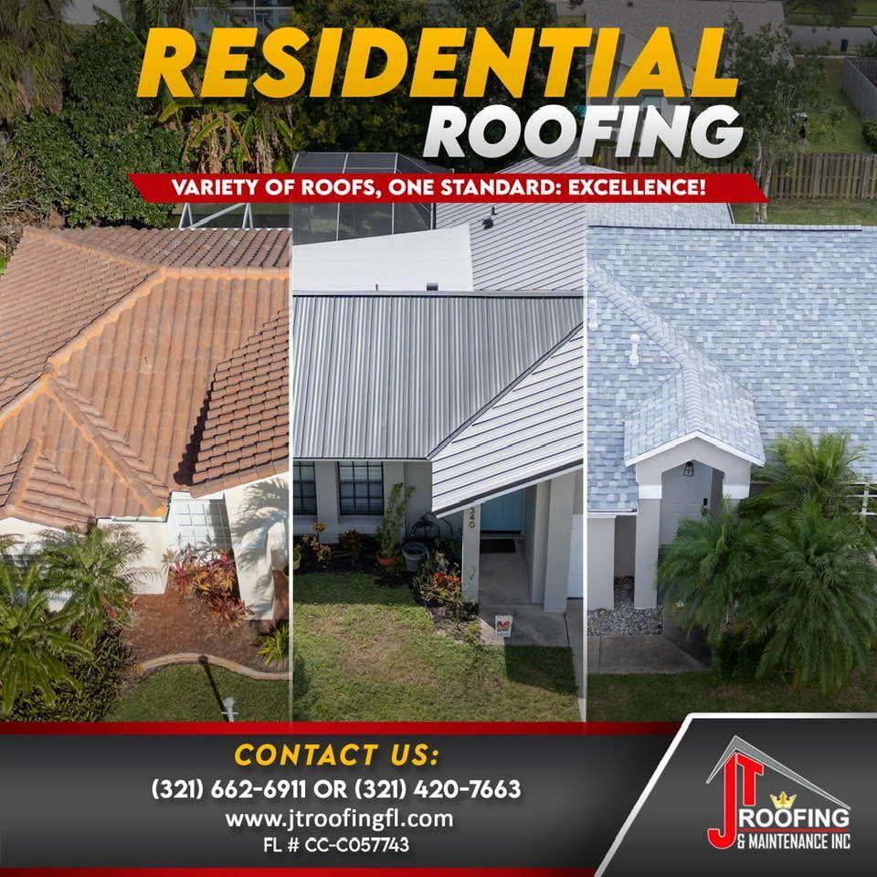 Roofing Prices in Melbourne FL & Palm Bay FL: What Homeowners Can Expect If you’re planning a roof replacement or new roof installation in Melbourne, Palm Bay, or anywhere in Brevard County , one of the first questions you’re likely asking is: How much does a new roof cost? At JT Roofing & Maintenance Inc., we believe in transparency. Below is a breakdown of average roofing prices per square (100 sq. ft.) for the most common roofing systems in our area. Average Roofing Costs in Melbourne & Palm Bay, FL 🔹 Shingle Roofing Prices $450 – $500 per square Asphalt shingles remain the most popular roofing choice for Florida homeowners due to affordability and reliability. Shingle roofing pricing includes : Tear-off and disposal Underlayment - Peel-and-stick vs Synthetic felt Architectural shingles (such as OC Duration) Professional installation Best for : Budget-friendly residential roofing with solid curb appeal. 🔹 Tile Roofing Prices $1,000 – $1,350 per square Tile roofing is a premium option known for longevity and hurricane resistance—very popular in Florida. Tile roofing pricing varies based on : Concrete vs clay tile Roof pitch and complexity Number of facets Structural requirements and code requirements Best for : Long-term durability and upscale homes. 🔹 Metal Roofing Prices $700 – $1,500 per square Metal roofing offers exceptional lifespan, energy efficiency, and wind resistance—ideal for Florida’s climate. Metal roof pricing depends on : Exposed fastener vs standing seam Color vs Mill Finished Gauge thickness - 26g, 24g, 22g Galvanized vs Galvalume vs Aluminum Roof design and penetrations Code Requirements Best for : Homeowners seeking longevity, storm resistance, and modern style. 🔹 Flat & Low-Slope Roofing Prices $650 – $1,500 per square Flat roofing systems are commonly used for commercial buildings and some residential applications. Flat roofing systems include : TPO Roofing Modified Bitumen PVC Roofing Pitch of roof Tapered vs flat insulation Deck types - post tension concrete, precast concrete, wood, steel, gypsum, tectum, light weight concrete Mechanically fastened vs fully adhered Best for : Commercial properties and low-slope residential roofs . What Affects Roofing Costs in Brevard County? While the ranges above are accurate for Melbourne FL and Palm Bay FL , final pricing can vary based on: Roof size and pitch Tear-off requirements Decking repairs Material upgrades Permits and inspections That’s why on-site inspections are essential for accurate estimates. Why Choose JT Roofing & Maintenance Inc.? ✔ Licensed & insured Florida roofing contractor ✔ Residential & commercial roofing experts ✔ High-quality materials ✔ Honest pricing with no surprises ✔ Financing options available We proudly serve Palm Bay, Melbourne, West Melbourne, Melbourne Beach, and surrounding Brevard County areas . Get a Free Roofing Estimate Today If you’re considering a new roof or replacement, trust the professionals at JT Roofing & Maintenance Inc. to provide accurate pricing and expert workmanship. 📞 Call today to schedule your free roof inspection and estimate 🏠 Serving Melbourne FL & Palm Bay FL